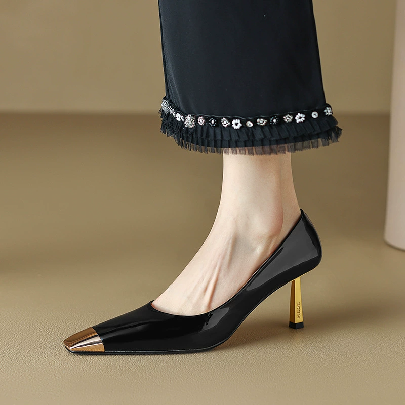 Women's iron toe anti-kick square toe stiletto high heels