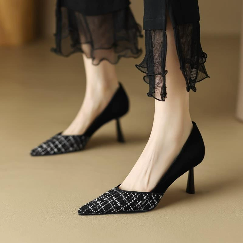 Women's plaid stiletto pointed toe high heels