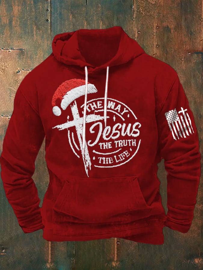 Men's Christmas Jesus The Way The Truth The Life Print Long Sleeve Hooded Sweatshirt