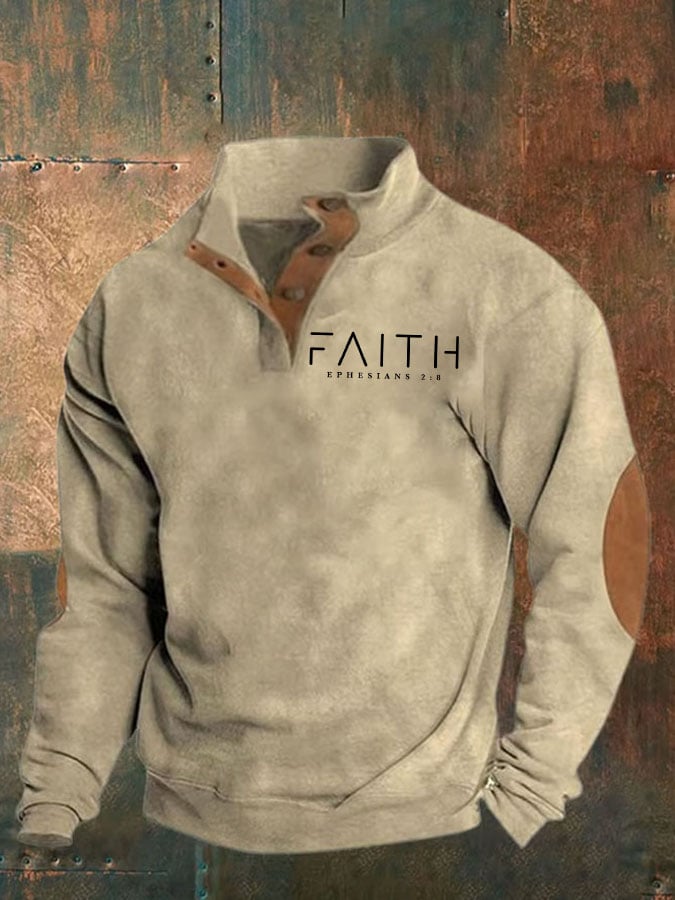 Men's Faith Printed Stand Collar Button Sweatshirt