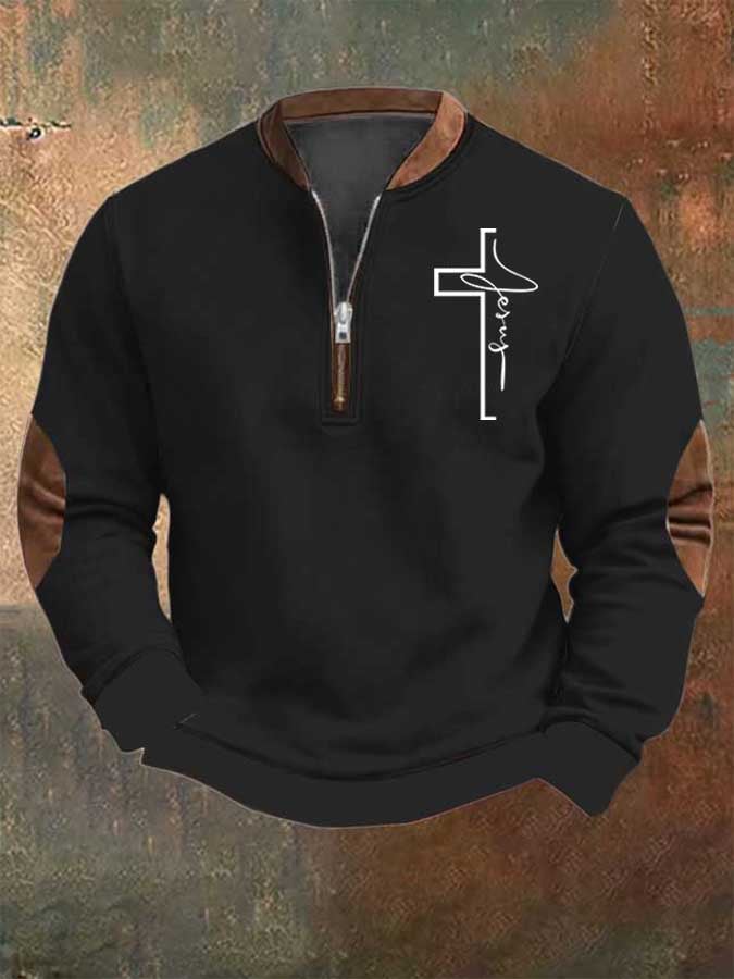 Men's Jesus Cross Print Casual Zipper Sweatshirt