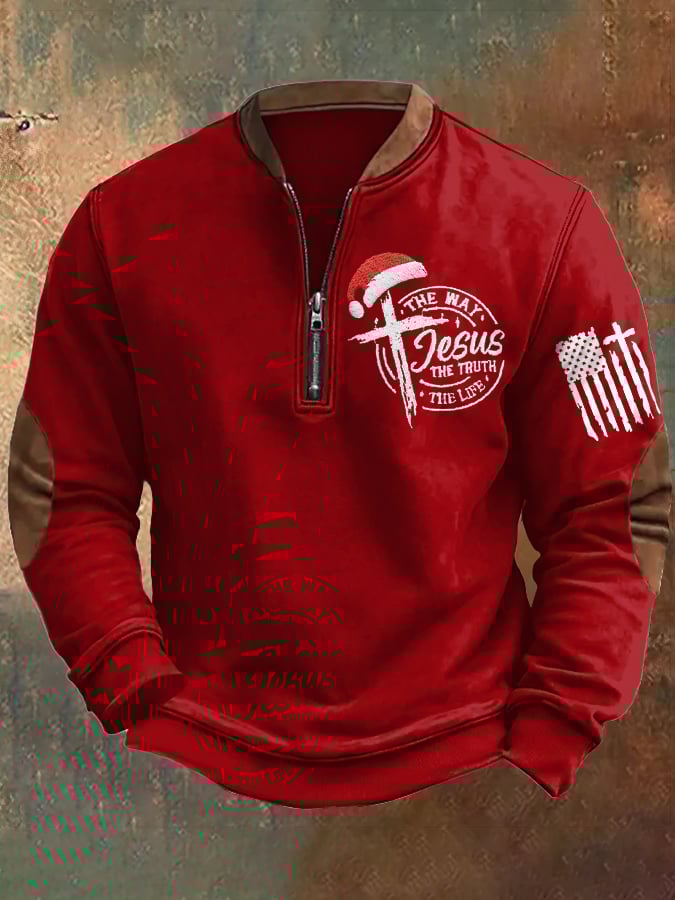 Men's Christmas Jesus The Way The Truth The Life Print Zip Collar Sweatshirt