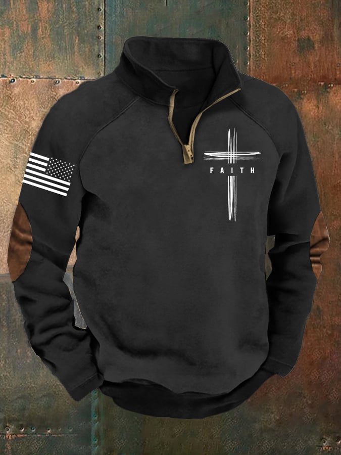 Men's Flag Faith Raglan Stand Collar Sweatshirt