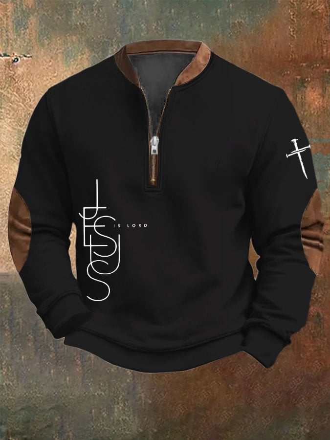 Men's Jesus is Lord Printed Zip Collar Sweatshirt