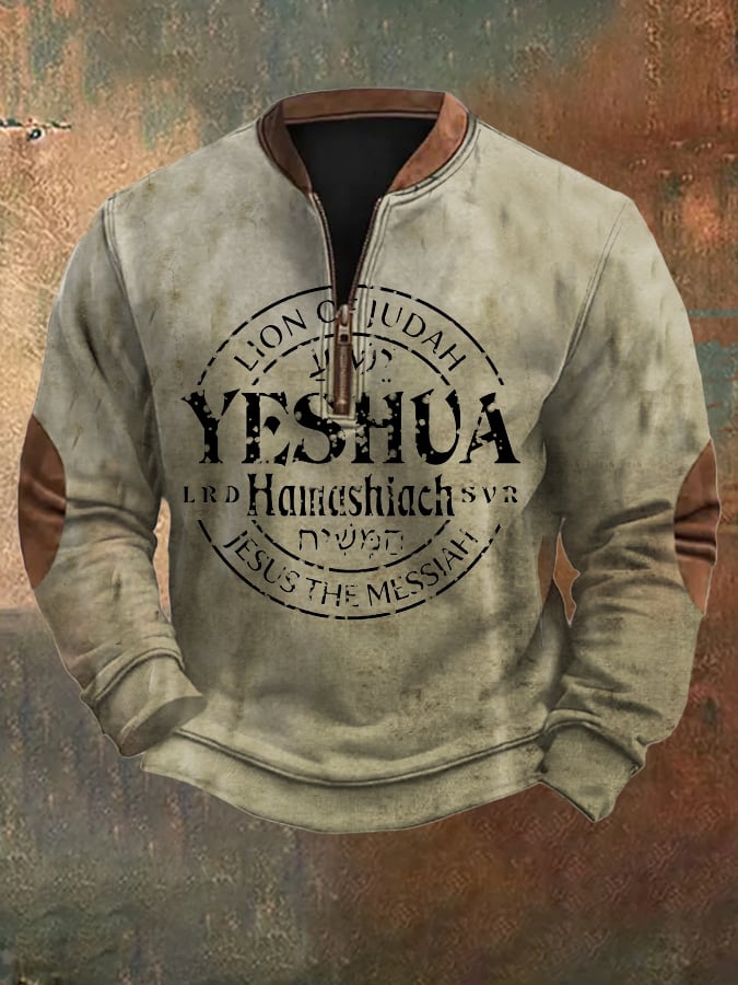Men's Yeshua Hamashiach Jesus is Messiah Casual Zip Up Sweatshirt