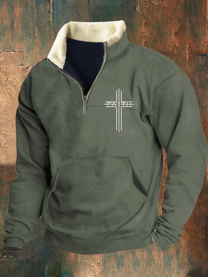 Men's Faith Works Wonders Printed Casual Zipper Sweatshirt