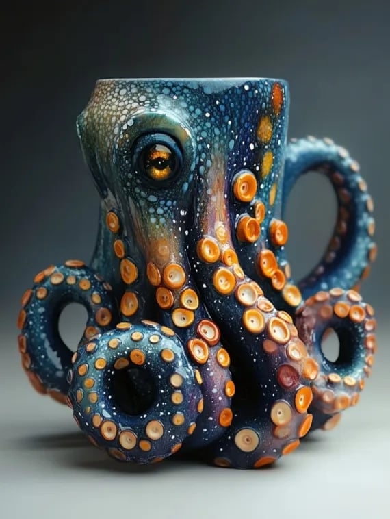 3D octopus tentacles wrap around the mug...