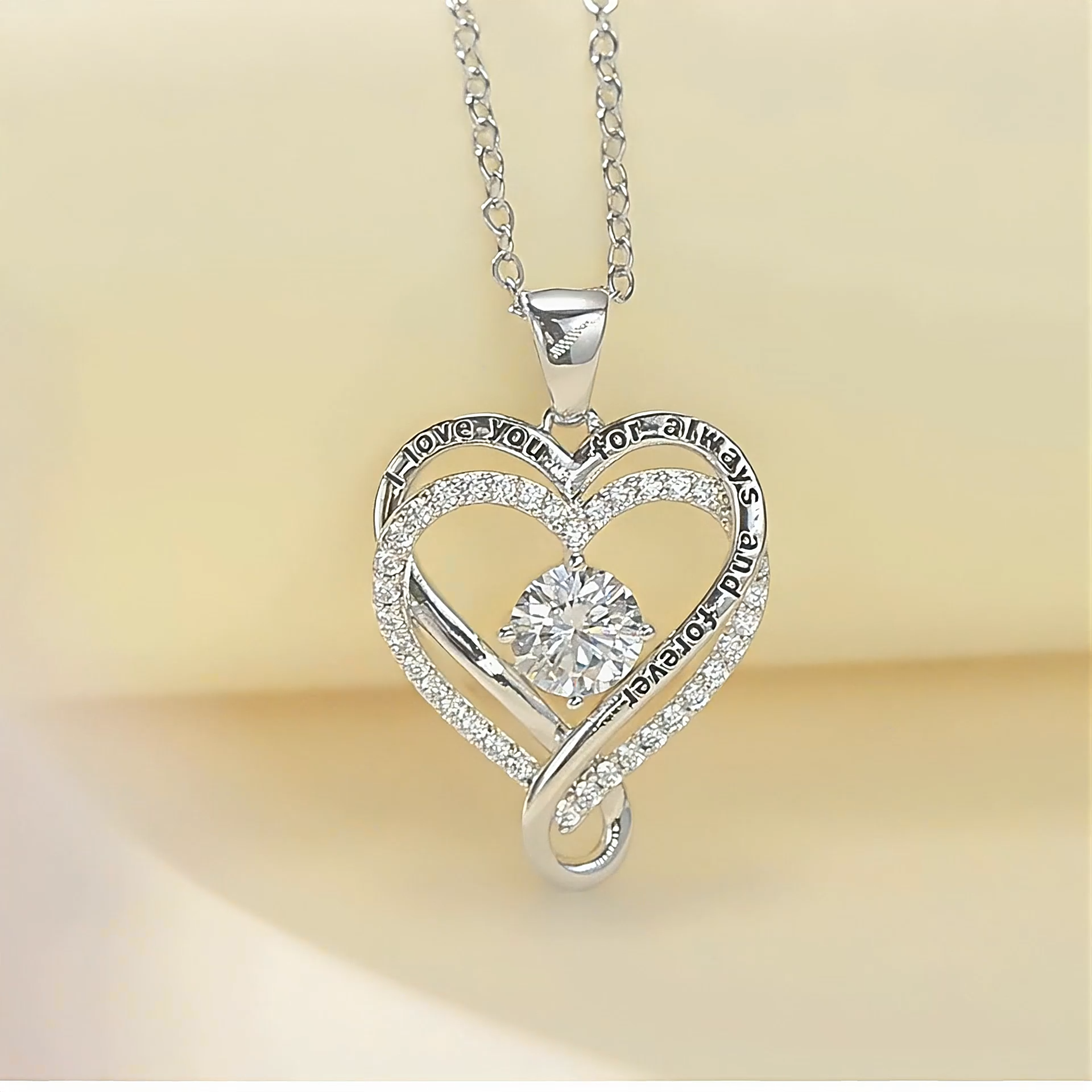 Engraved Heart Necklace for Wife with Exquisite Wooden Box, "To My Wife" Forever & Always Heart Necklace