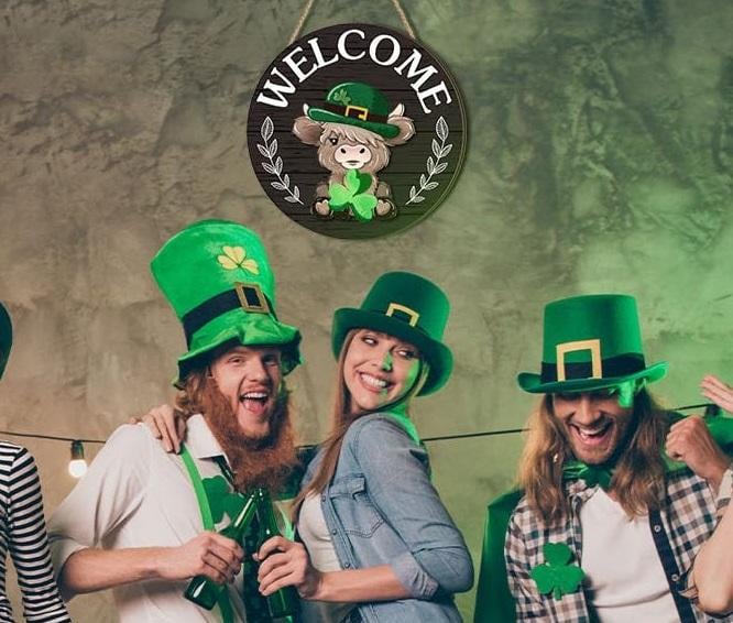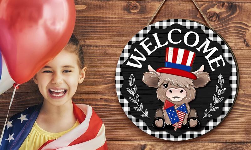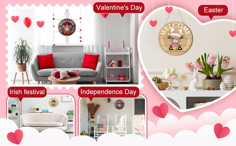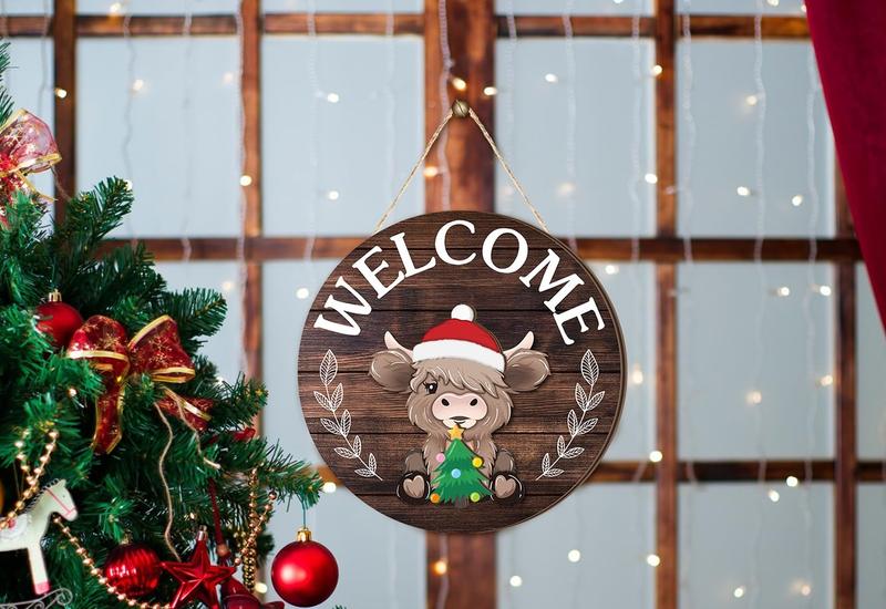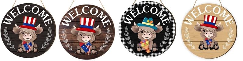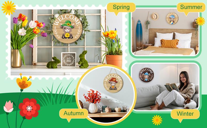 ⏰35 PCS Interchangeable Highland Cow Welcome Sign with Seasonal Magnet Detachable Hats Accessories