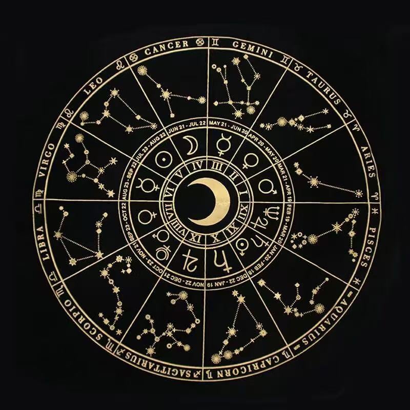 Or choose the Zodiac Constellation Tarot Mat (a circular, gilded 12-sign print) for readings tied to cosmic energy: this 50x50cm mat packs detailed star charts and zodiac symbols into a perfectly sized surface, ideal for birth chart-aligned draws or intimate ritual work.