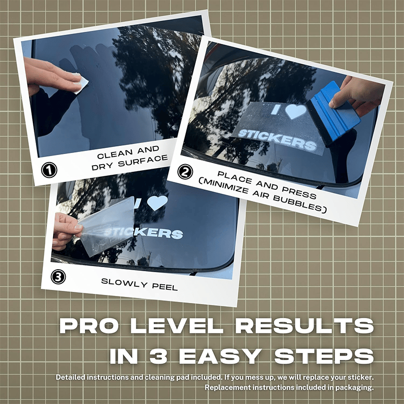 Simple peel-and-stick application. Adheres smoothly to windows,bumpers, laptops, or any clean surface.
