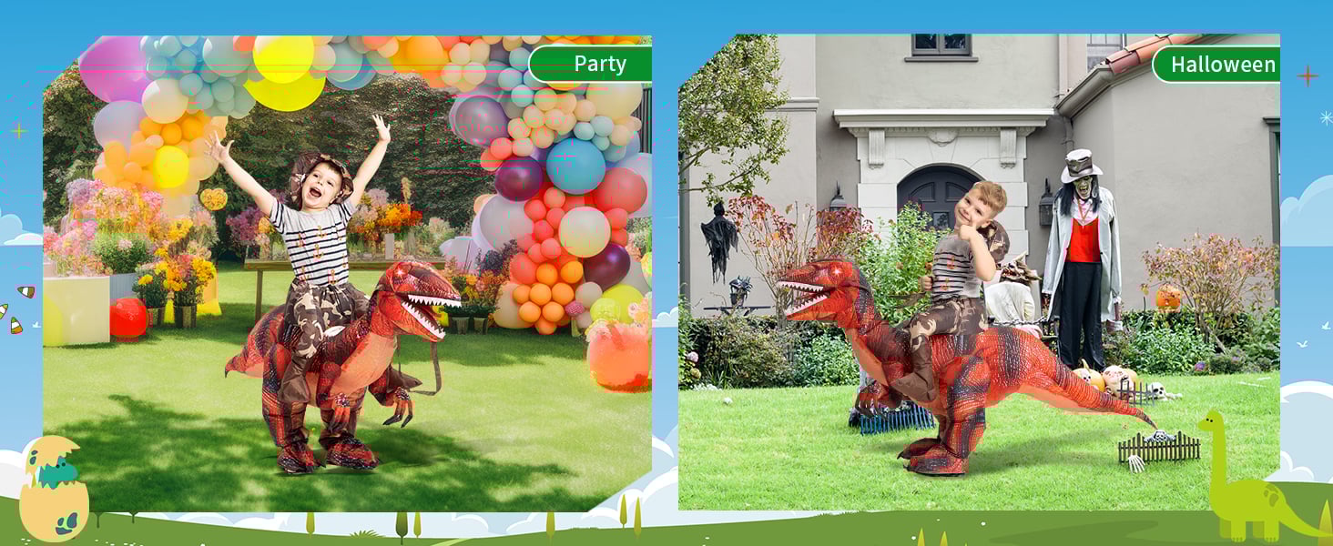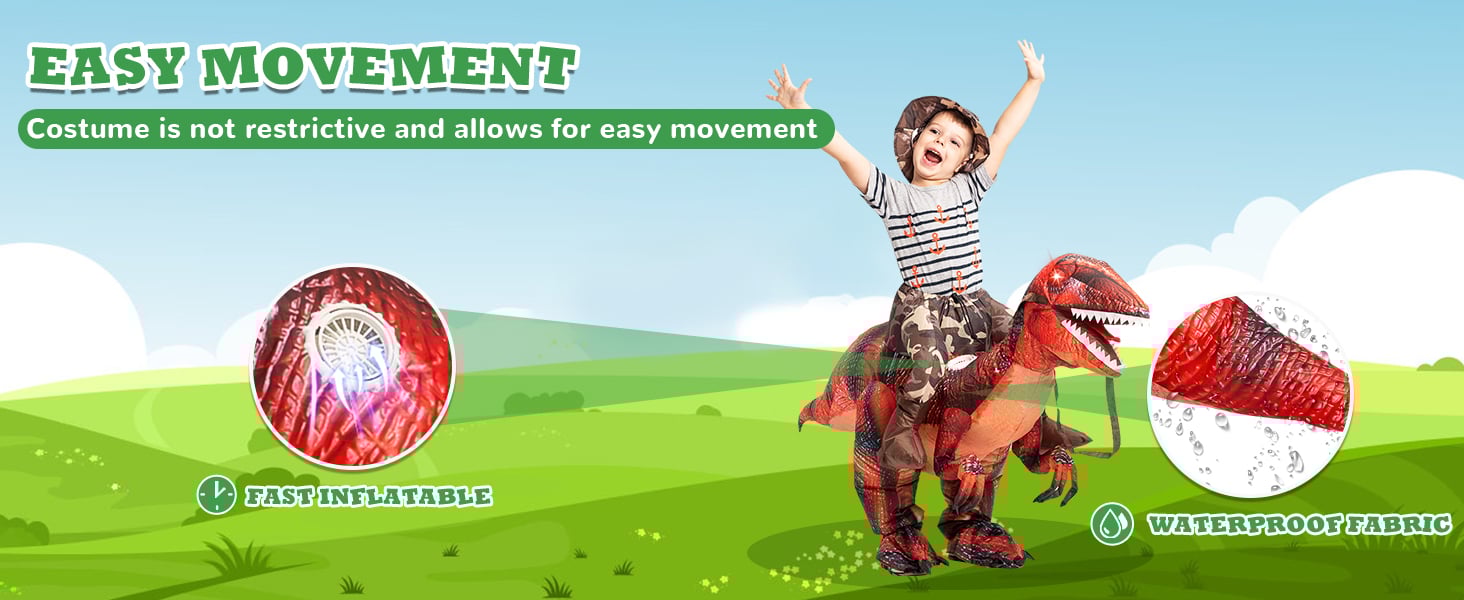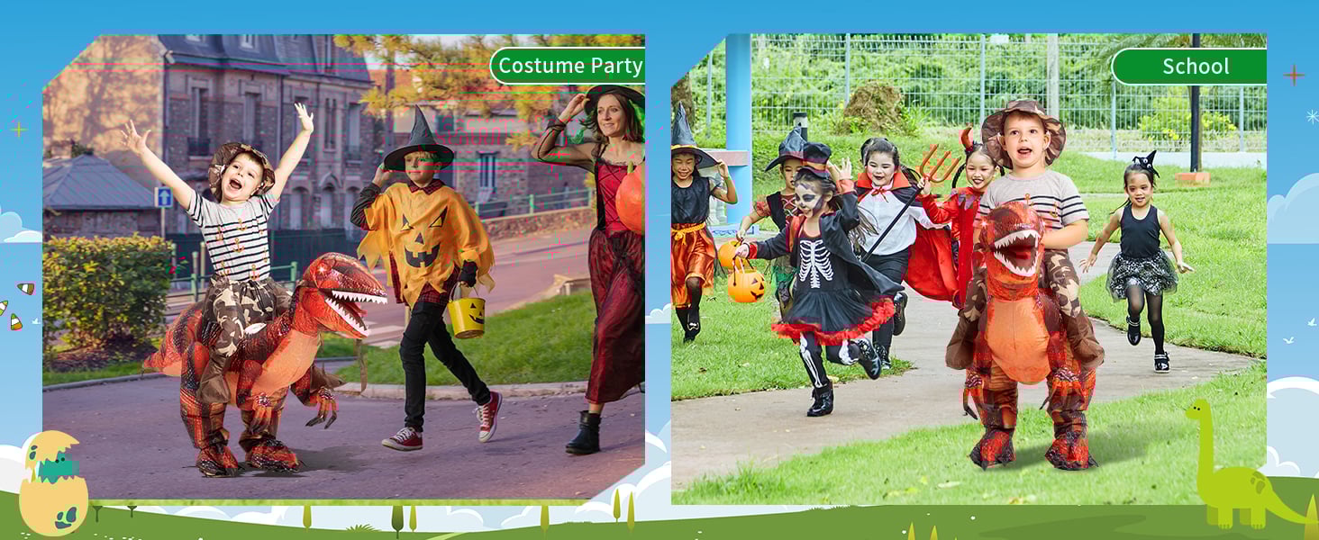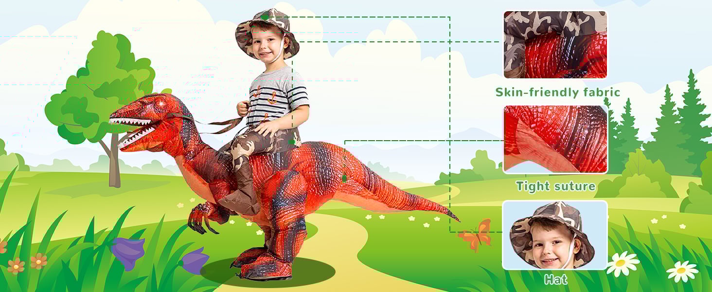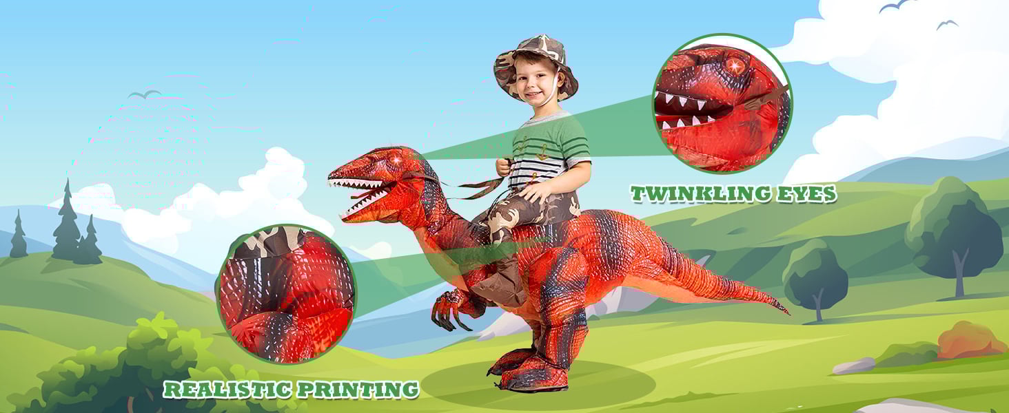 This deluxe version of the inflatable T-REX costume is suitable for most kids. Please choose the correct size according to your child's ages.