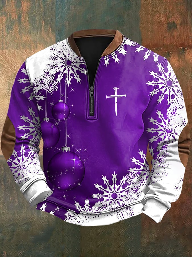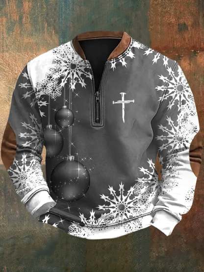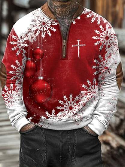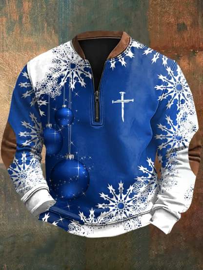 Men's Christmas Faith Print Zipper Sweatshirt