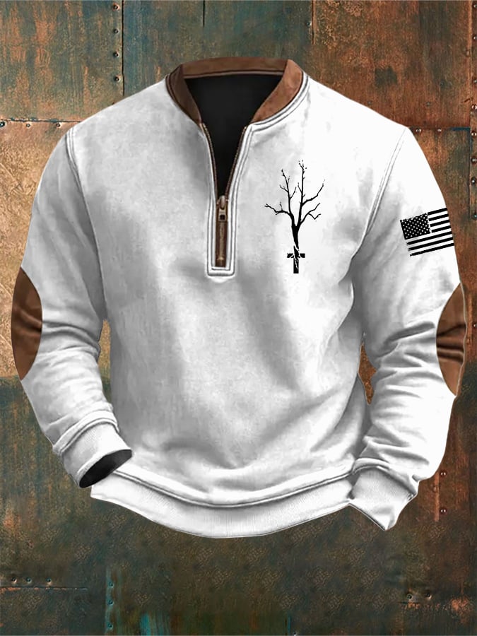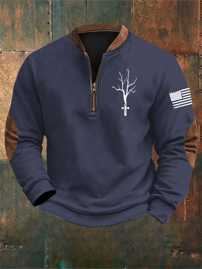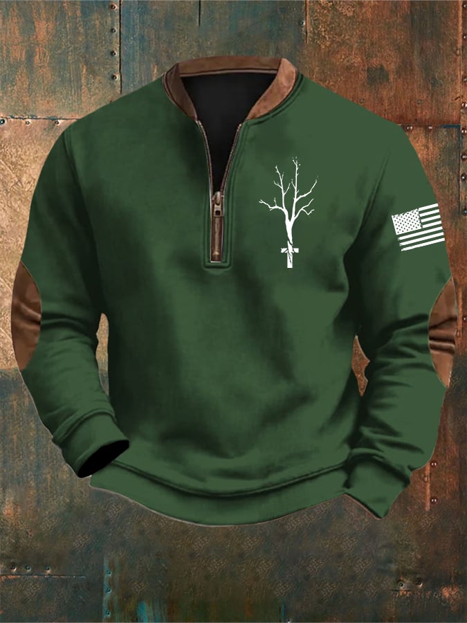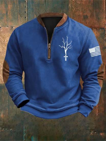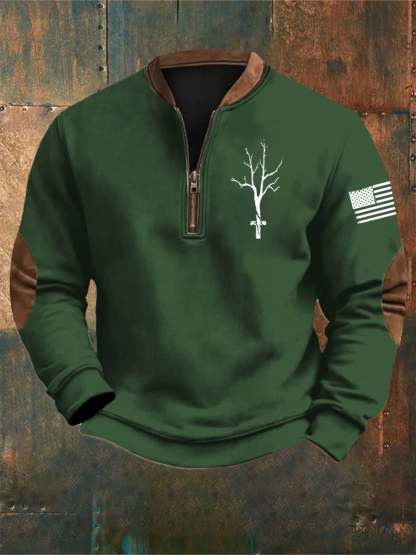 Men'S Faith Cross Printed Zip Collar Sweatshirt