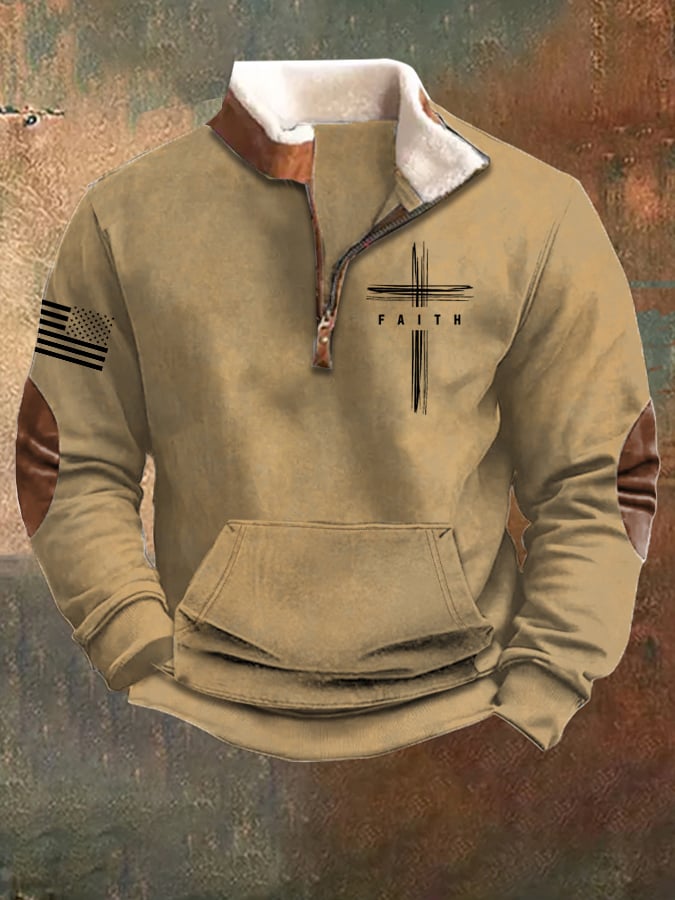 Men's faith faith vintage zip-up collar long-sleeved sweatshirt