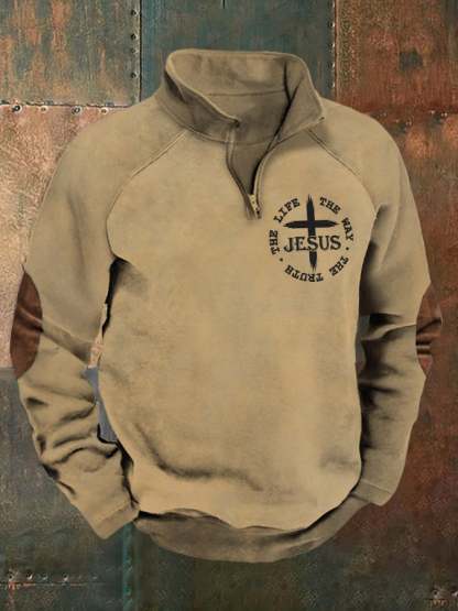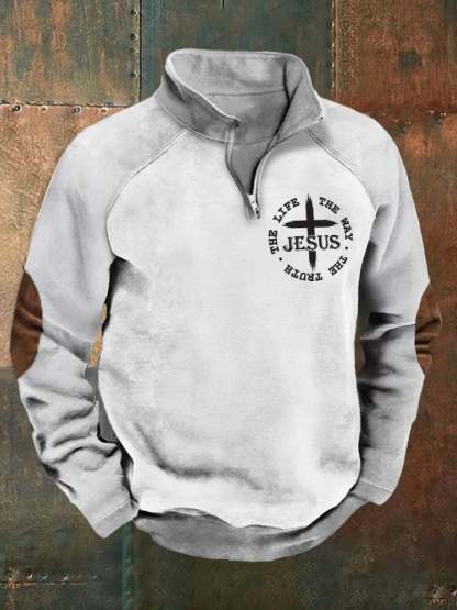 Men's Faith Print Raglan Stand Collar Sweatshirt