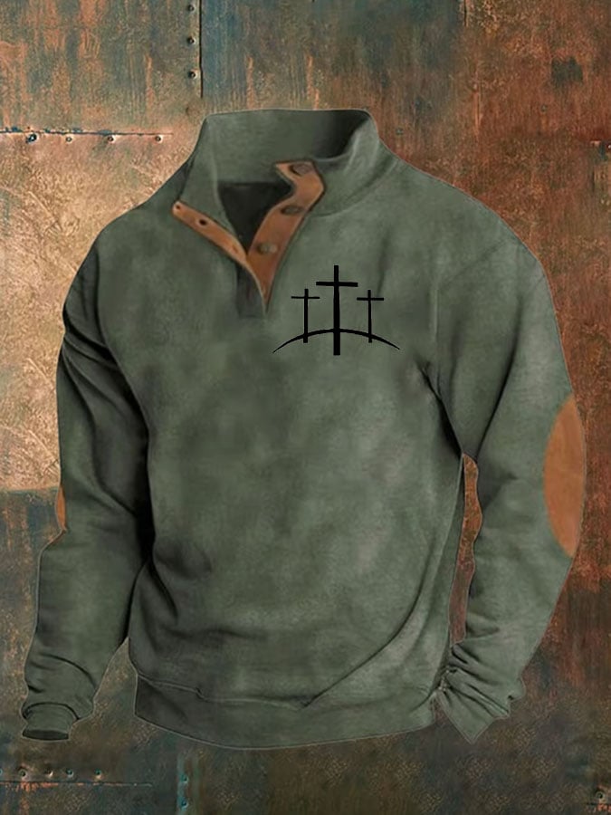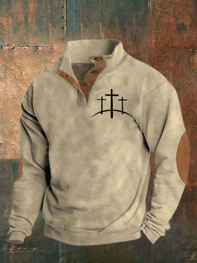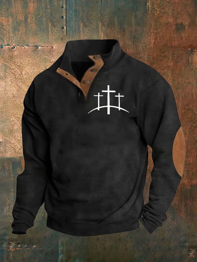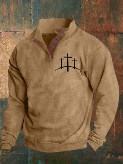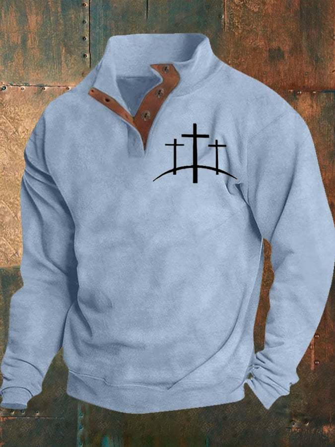 Men's Faith Printed Stand Collar Button Sweatshirt