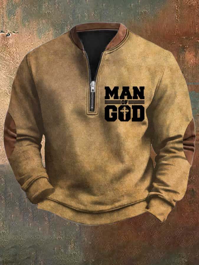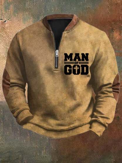 Men's Man Of God Printed Casual Zipper Sweatshirt