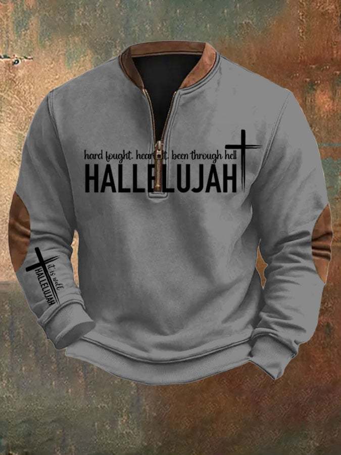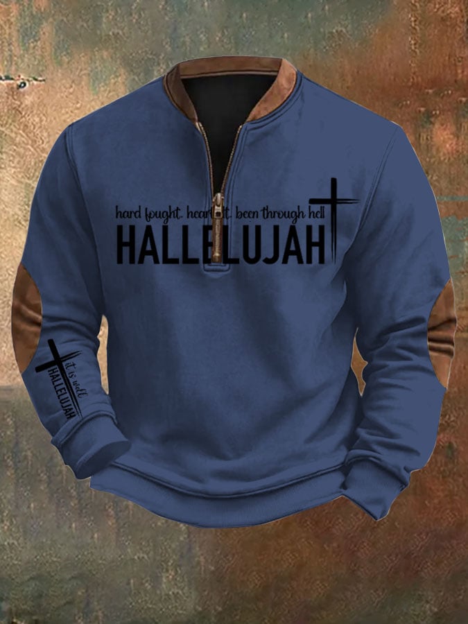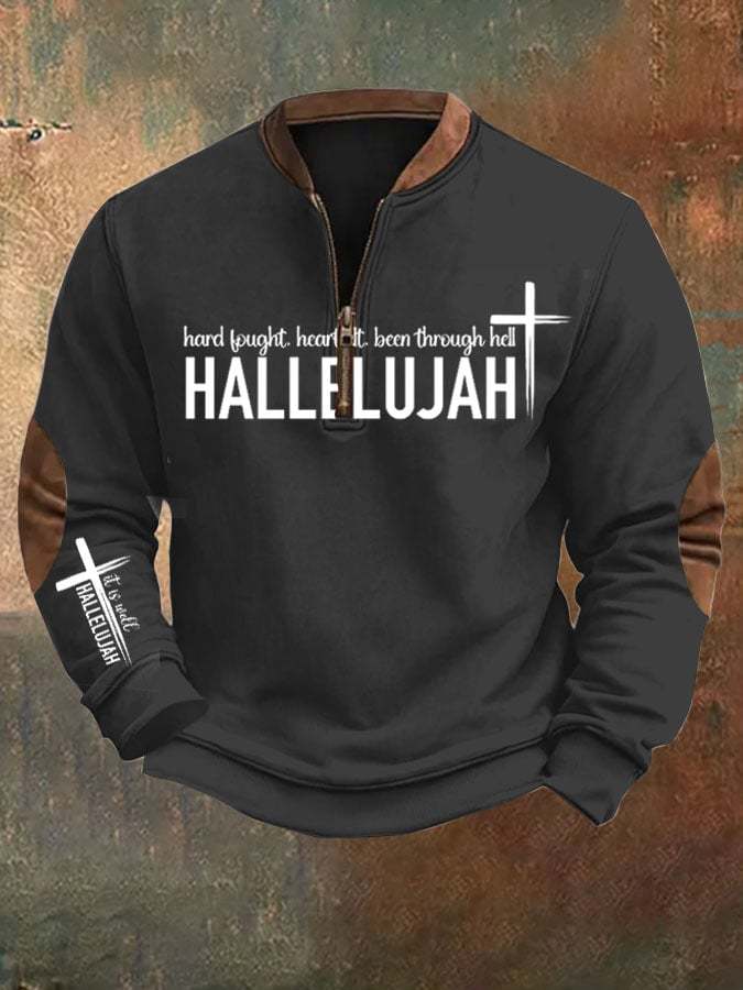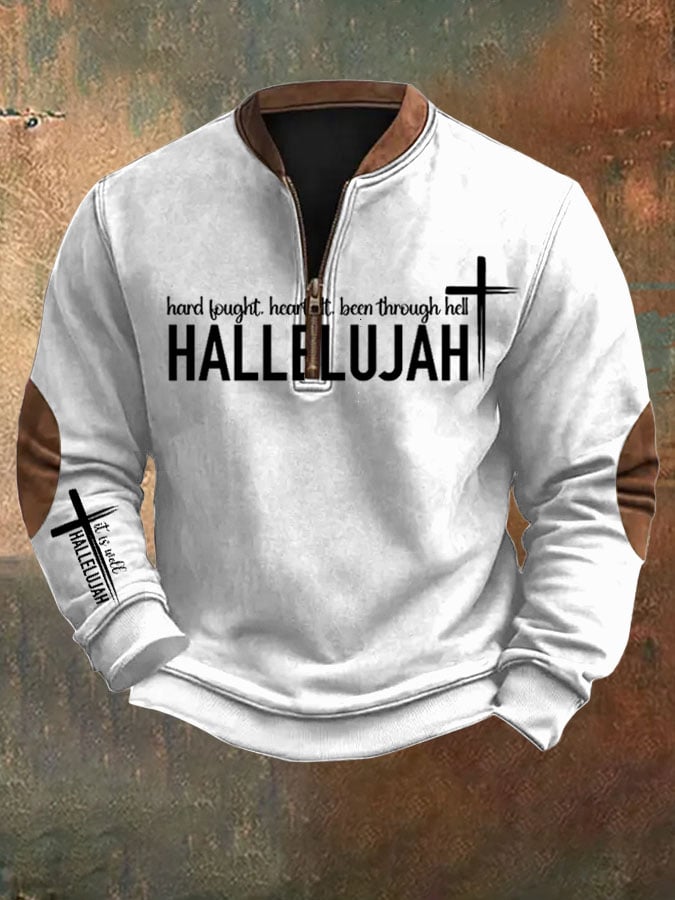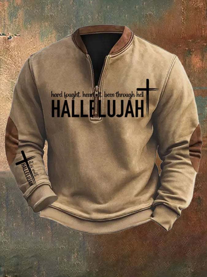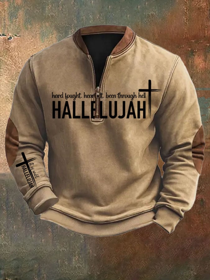 Men's Retro Musical Faith Print Zip Collar Sweatshirt