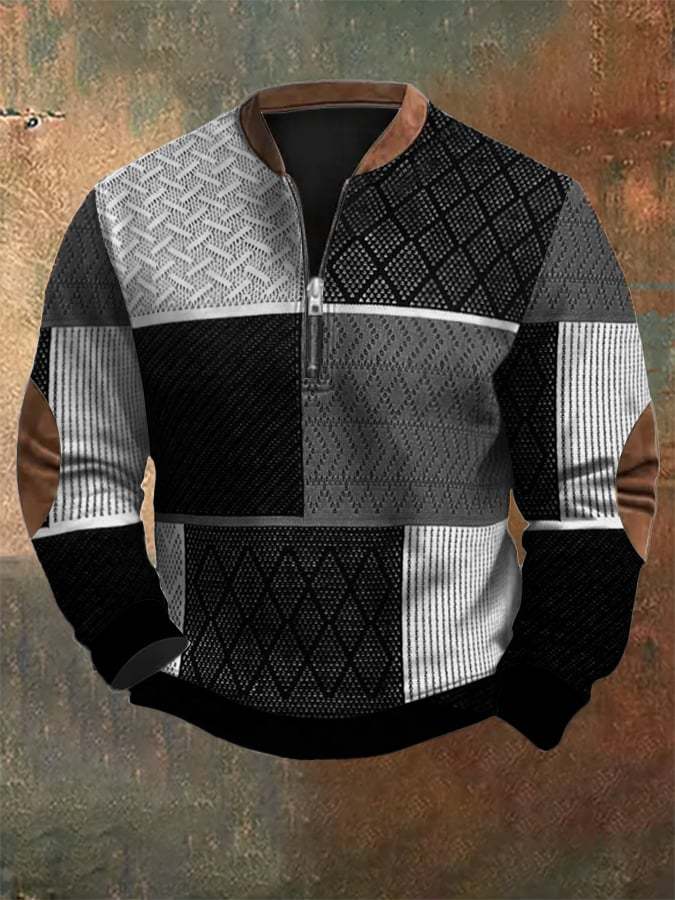 Men's Retro Western Textured Print Zip Collar Sweatshirt