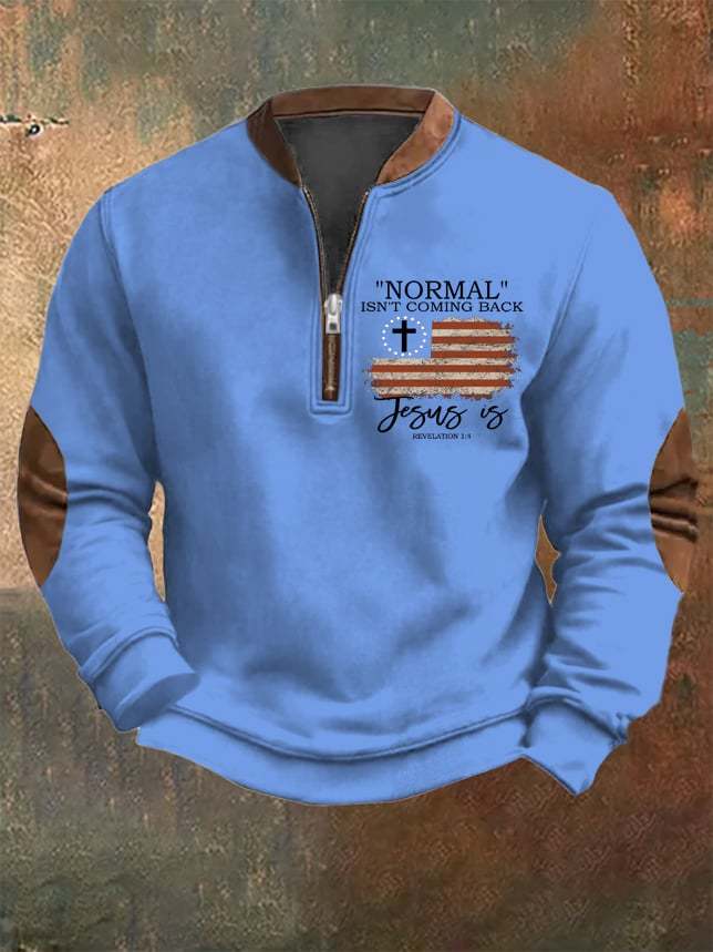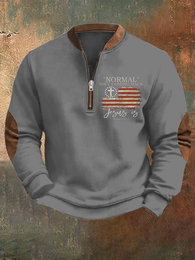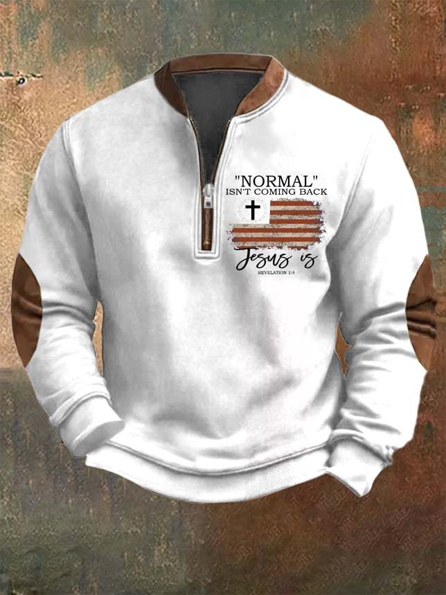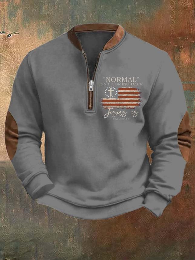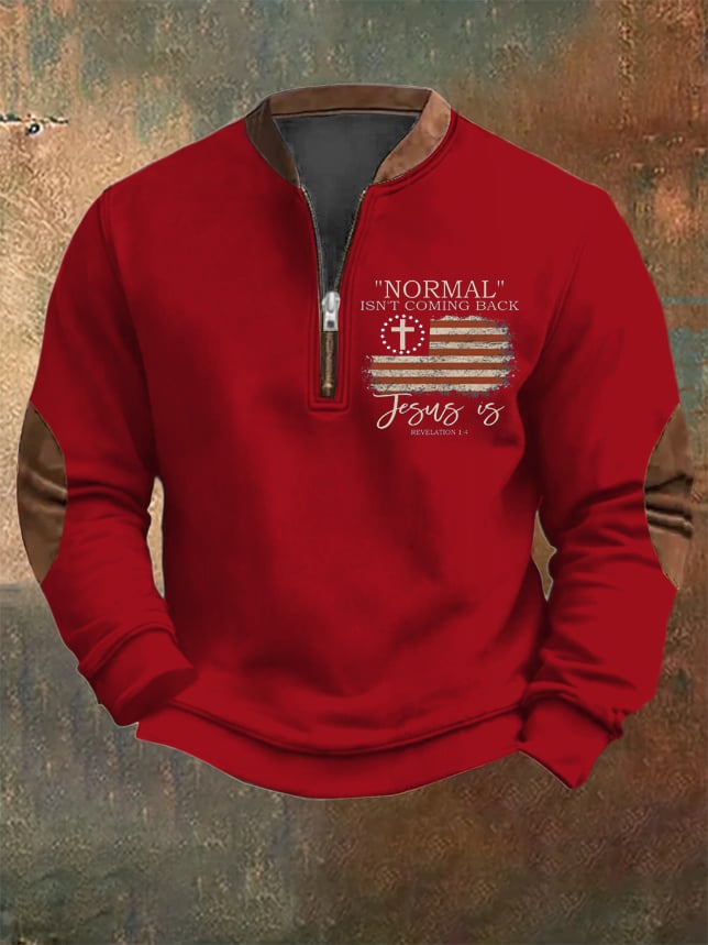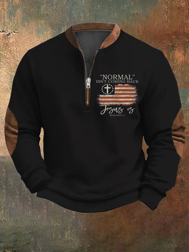 Men's Vintage Faith "Normal Isnt Coming Back" Printed Zip Collar Sweatshirt