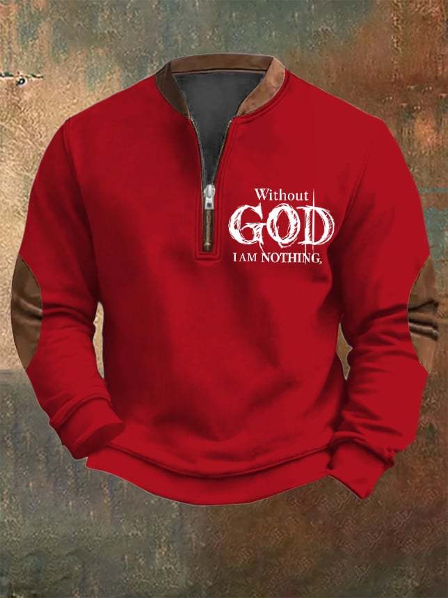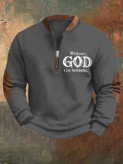 Men's Vintage Faith "Without God I Am Nothing," Printed Zip Collar Sweatshirt