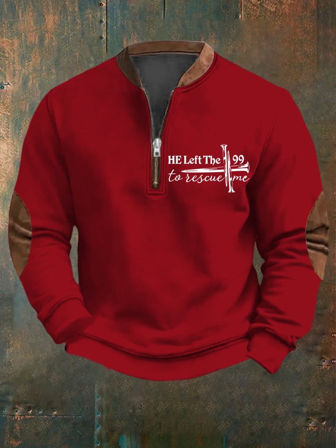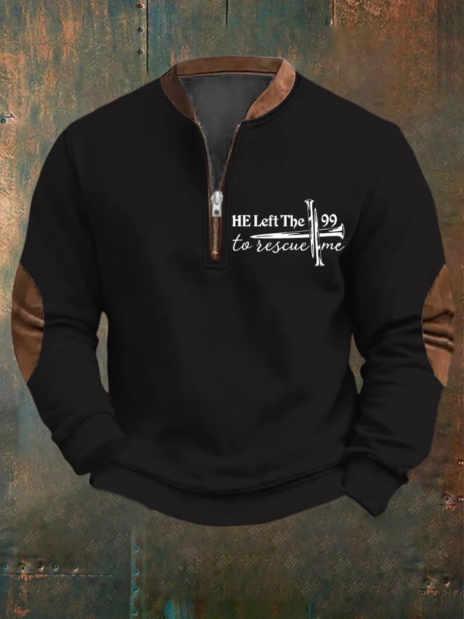 Men's Vintage Faith��He Left The 99 To Rescue Me�� Printed Zip Collar Sweatshirt