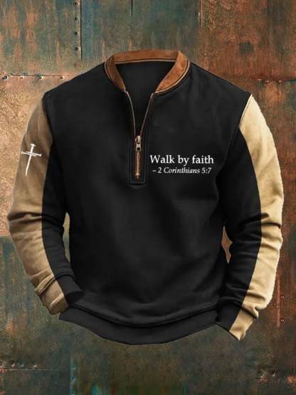Men's Walk By Faith Printed Zip Collar Sweatshirt
