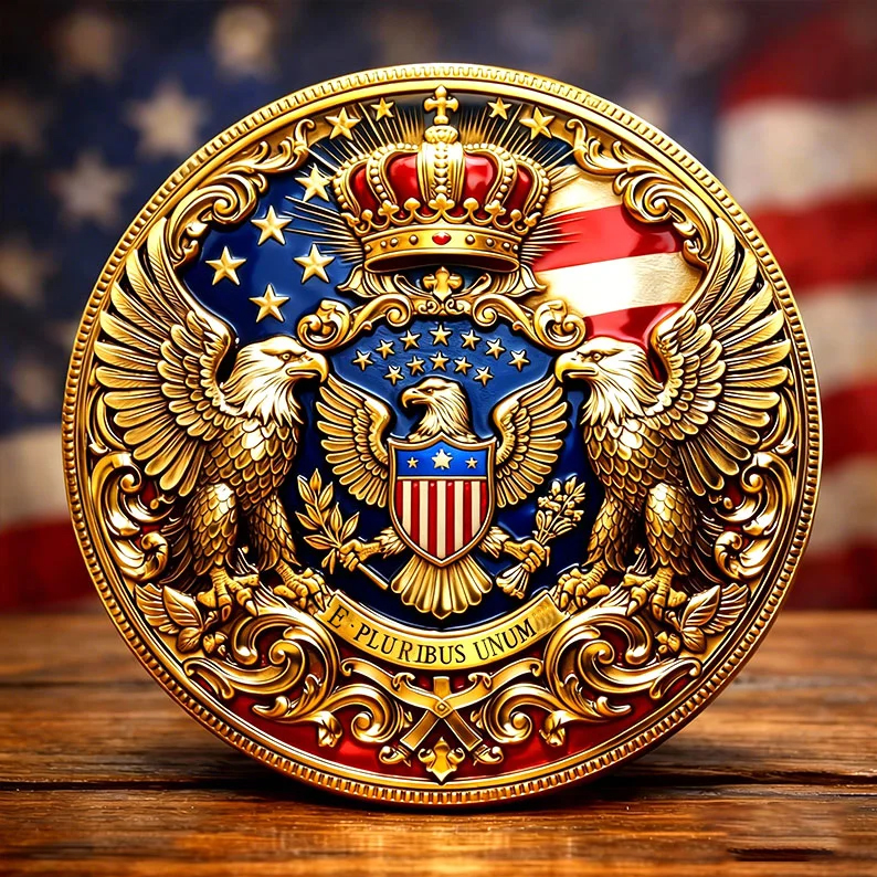 The reverse side displays a powerful double bald eagle crest, wings spread in perfect symmetry — representing vigilance, strength, and unity.